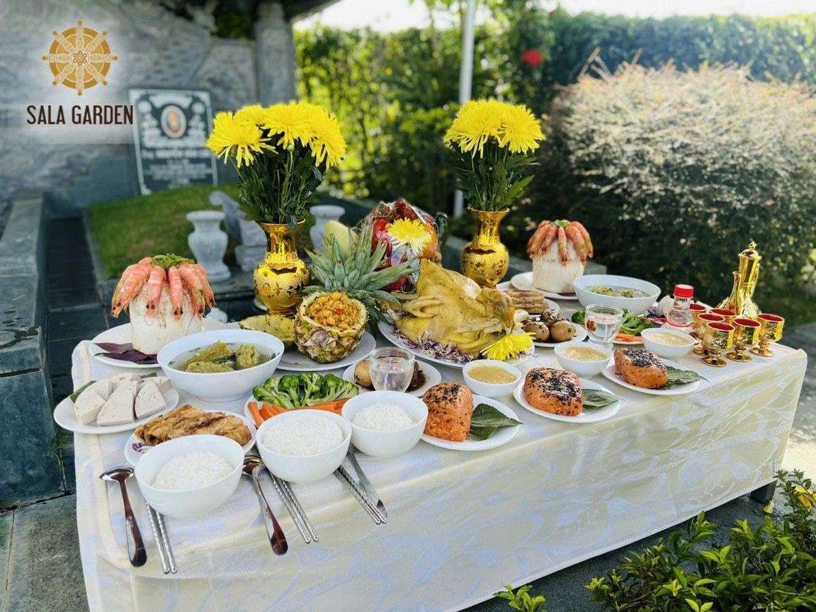 Trong cuộc sống bận rộn hiện nay, có lẽ thật khó để có thể chuẩn bị một mâm cúng tươm tất vì chúng ta không có đủ thời gian hoặc loay hoay không biết phải nên nấu món gì vừa ngon lại vừa ý nghĩa để dâng lên bàn lễ. Thấu hiểu điều đó, với mong muốn giúp mọi người có thể chu tất vẹn toàn những lễ nghi quan trọng cho người đã khuất, trong đó có nghi thức cúng cơm đám tang, Sala Garden cung cấp dịch vụ cúng giỗ các món chay và mặn tùy theo nhu cầu và mong muốn của Quý khách hàng.