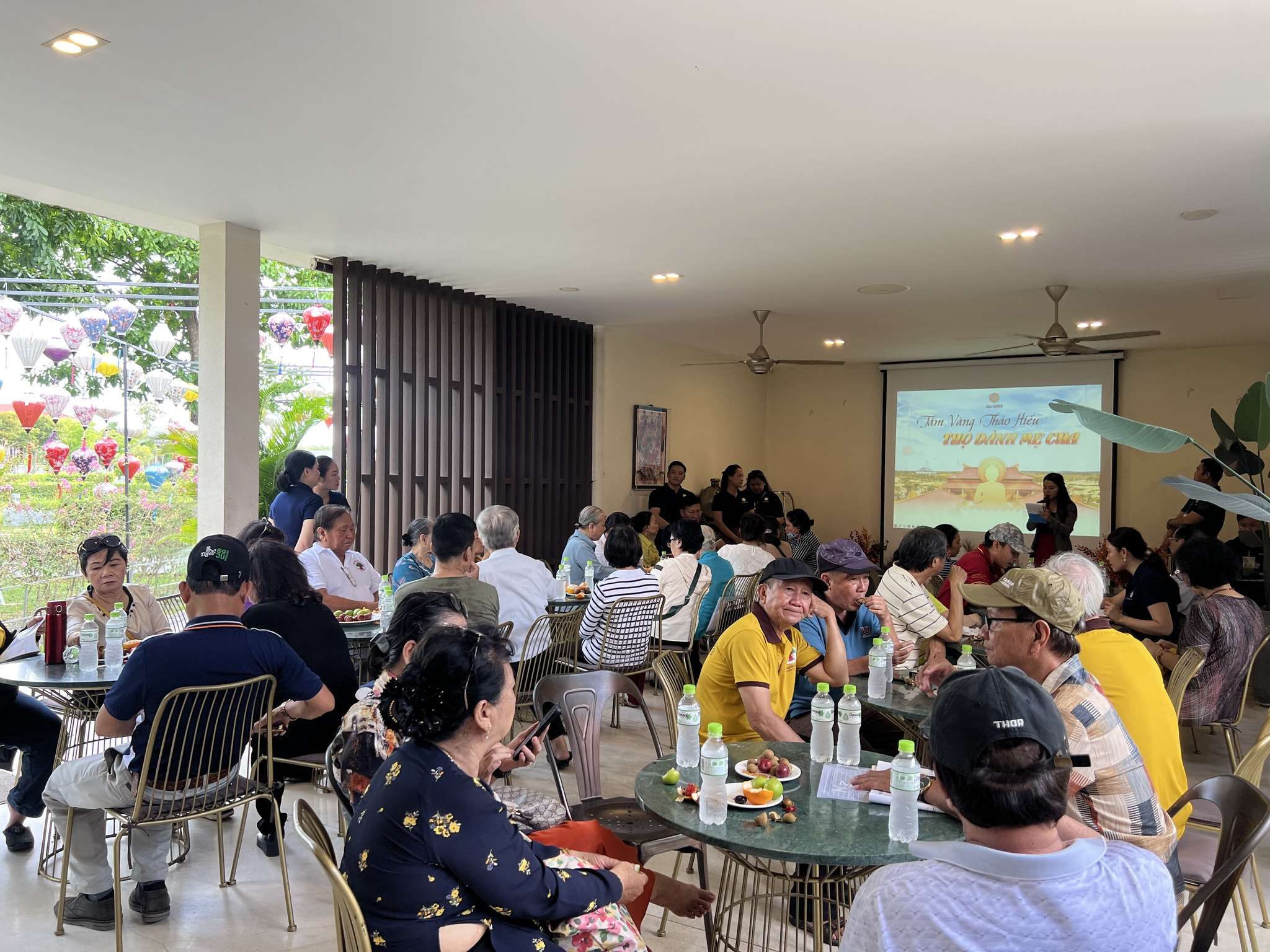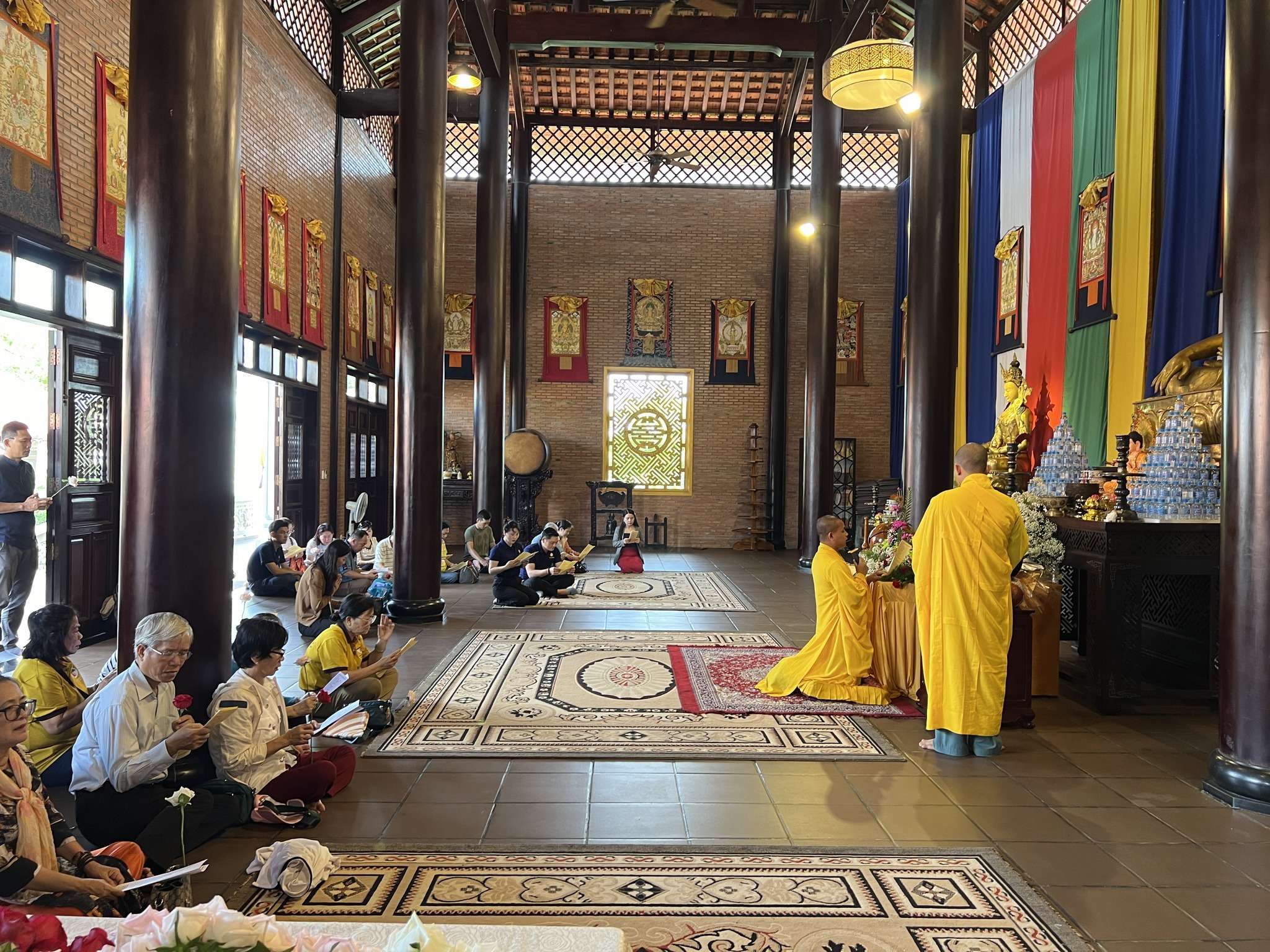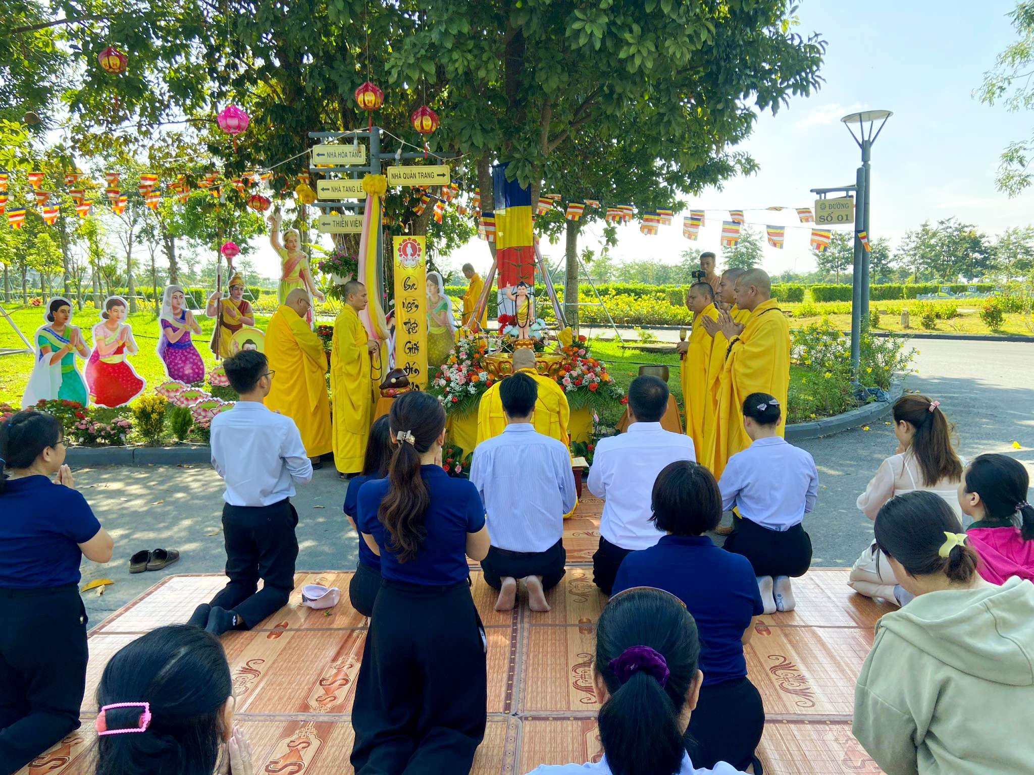Tại Sala Garden, Lễ tắm Phật năm nay được Quý Thầy tịnh xá Sala tổ chức ngay trong không gian thanh tịnh của hoa viên. Tại đây, tượng Đức Phật được đặt trang trọng trên bệ cao, mọi người cung kính lần lượt tiến lên, nhẹ nhàng múc nước hoa thơm và thực hiện nghi lễ một cách thành tâm và cẩn thận.